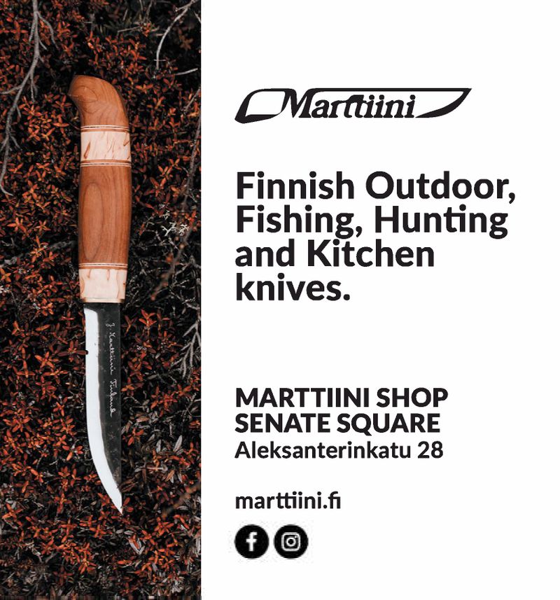 Traditional Finnish knives for hunting, fishing, camping, hiking and kitchen. Receive 10% discount for purchases over 40€ by showing your active Citypass!